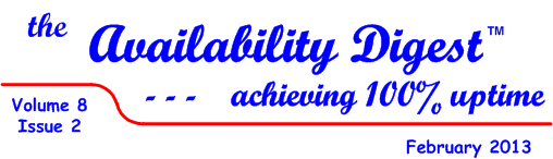 The Availability Digest is published monthly. It may be distributed freely. Please pass it on to an associate. Managing Editor - Dr. Bill Highleyman editor@availabilitydigest.com. © 2013 Sombers Associates, Inc., and W. H. Highleyman | |||